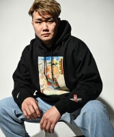 アーティスト「三巴 彫ひろ/MITOMO HORIHIRO」による、格闘漫画である「刃牙」をモチーフにした浮世絵デザインのパーカー。