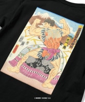 アーティスト「三巴 彫ひろ/MITOMO HORIHIRO」による、格闘漫画である「刃牙」をモチーフにした浮世絵デザインのTシャツ。